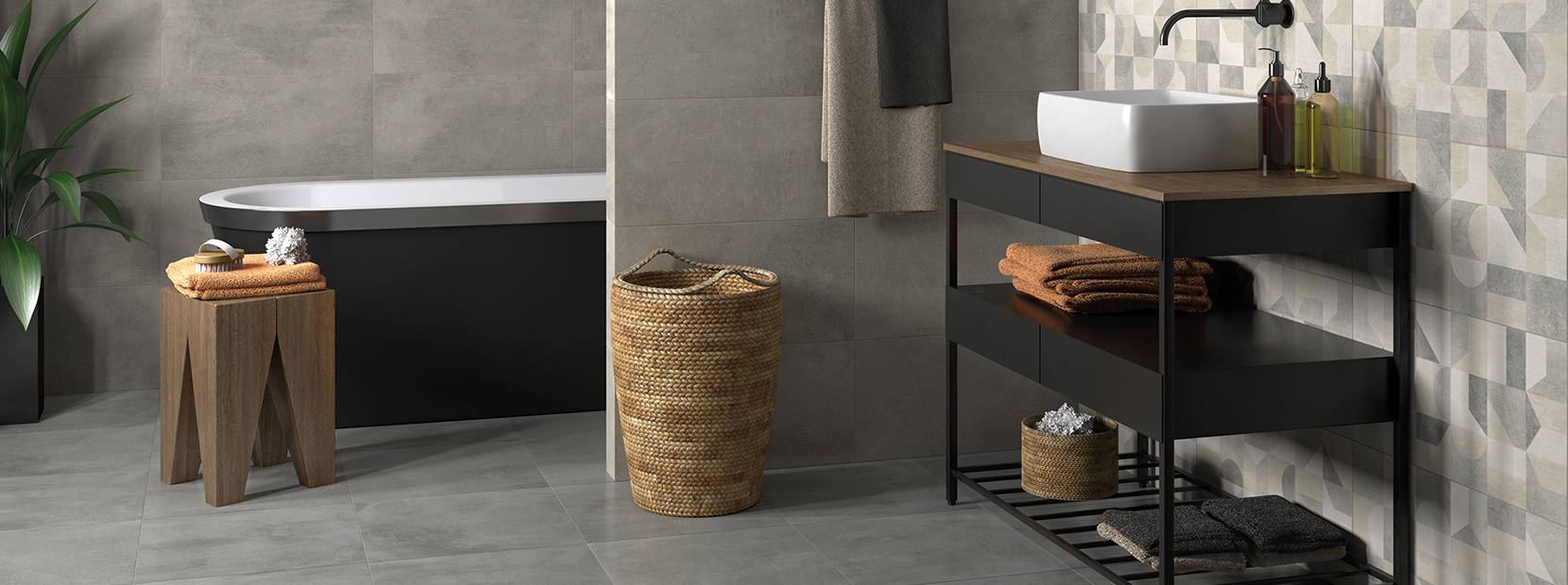 Studio er moderne og samtidig klassisk. Flisernes størrelse og udførelse sammen med den neutrale farveskala gør det til en klassisk og alsidig serie. Dekorationsflisens moderne mønster gør sig perfekt som bagvæg eller stænkbeskyttelse og passer til både badeværelse og køkken.